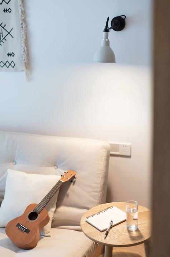 主卧床头背景墙选用了黑色伸缩壁灯,舒适实用又好看