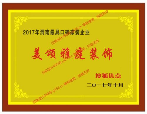渭南市美颂雅庭装饰建材成立于2007年公司拥有数10位优秀家装设计师,融合东西方传统文化理念,以创意先行,秉承人文合一的不同设计精髓,成为渭南家居新文化的典范。至今已十年,所谓付出就有回报,我们的工程质量也一直得到大家认可。 2008年被室内装饰协会评为零投诉诚信企业; 2009年被消费者协会评为最受消费者依赖的品牌; 2009年-2010年被陕西省室内装饰协会授予“优秀企业”的称号; 2011年被渭南市室内装饰协会授予“零投诉”王牌装饰企业的称号; 2012年被渭南市室内装饰协会授予“优秀企业”的称号; 2011-2012年被陕西省室内装饰协会授予“优秀企业”的称号。