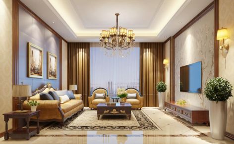 恒昌苏园丰景·乐活街128平米美式风格装修案例风效果图