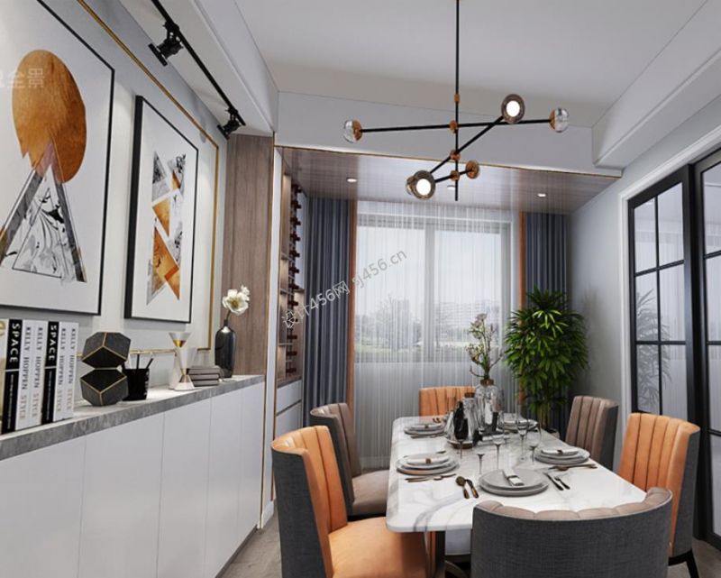 鑫润紫金城123.08平米三居室现代轻奢风格风效果图