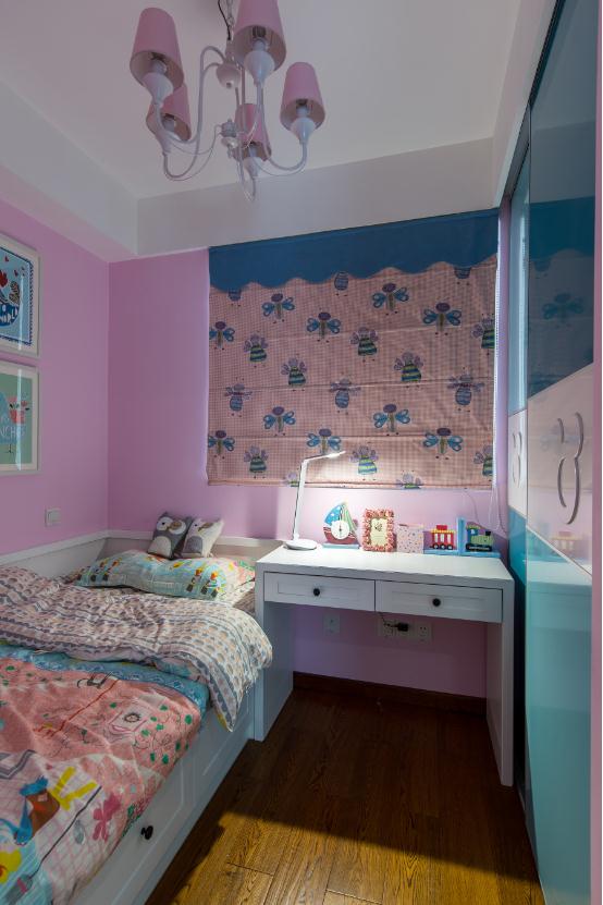 儿童房的设计整体以活泼为主,因为可以弥补次卧采光较差的情况,榻榻米的设计让空间的储物和使用化
