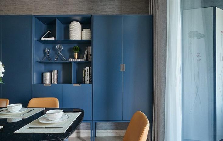 餐厅,设在沙发后面,空间不大,餐桌椅实用为主,造型简洁。在餐桌旁边,还装有餐边柜,中间位置是和厨房相通的,下图详看。全屋这些定制的柜子,效果都不错。