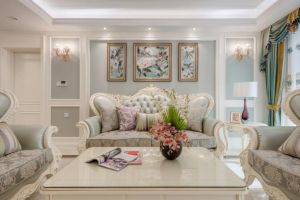 秋日里的童话 或许 是一个静谧的午后 或许 是一段流淌过的音符 也或许 只是一间看得见风景的房 在法式浪漫主义的经典线角渭南家装e站-乐天聚天籁139平米三居室美式风格装修效果图