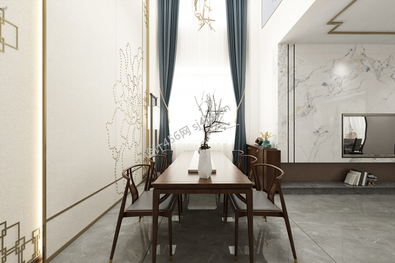 金桂园新中式风格300平米别墅装修案例风效果图