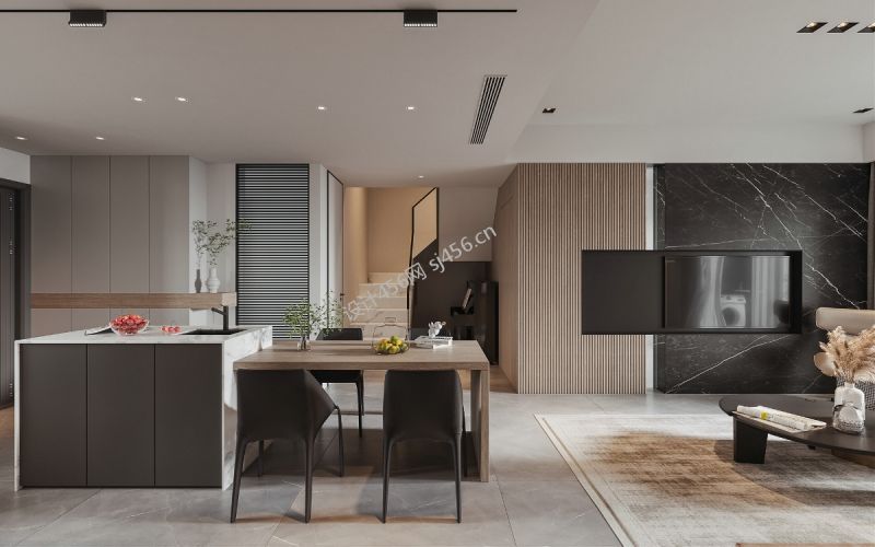 中建铂公馆98平现代风格三居室装修案例风效果图