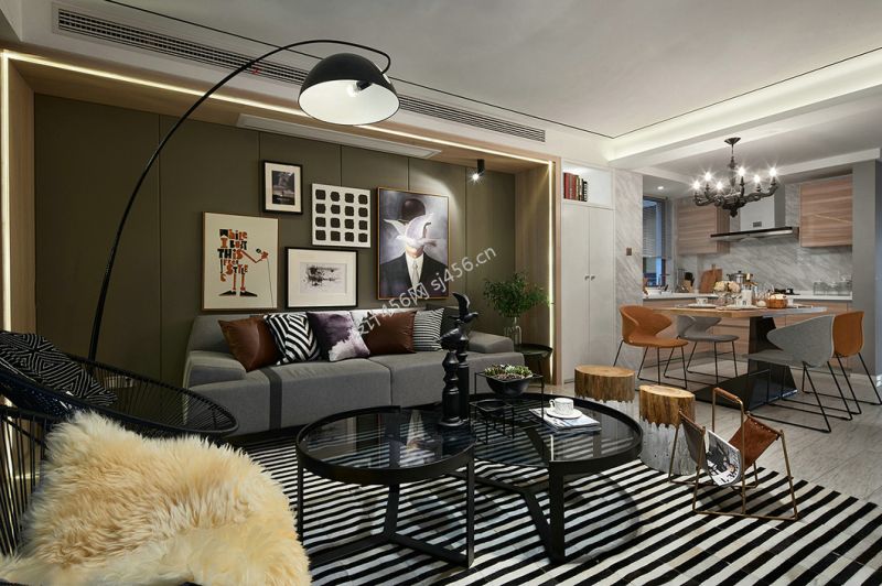 龙湖紫都城115平现代风格三居室装修案例风效果图
