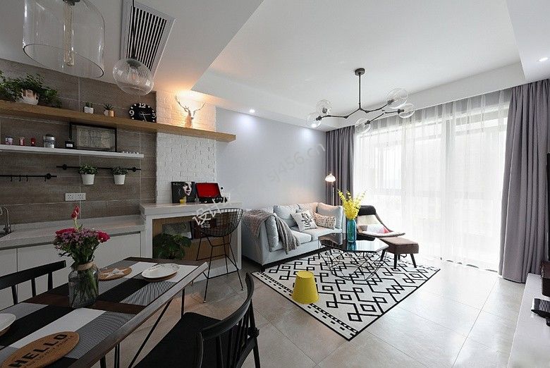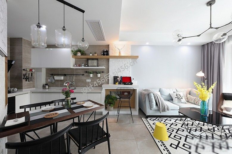 纽宾凯国际社区120平方三居简美装修案例风效果图
