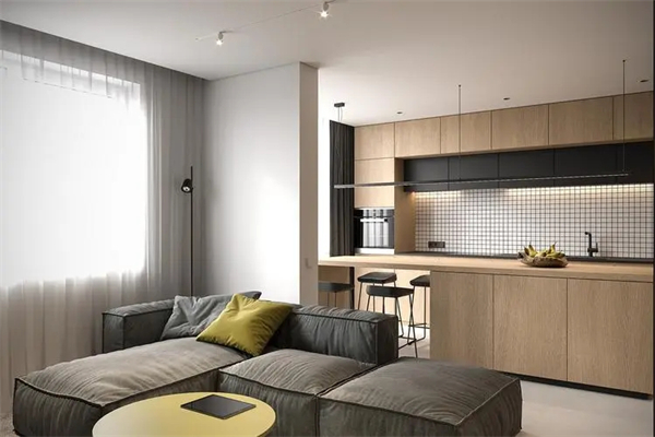 1、这类住宅的房主一般都是单身人士,他们往往工作比较忙碌,没有太多的时间和精力花费在煮饭上,因此小编建议大家采取开放式厨房设计,添个吧台,买个吧凳,这样的设计可以让室内空间更加通透,采光和通风变得更好。