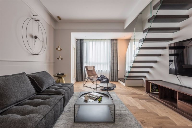 金湖听语欢乐颂140平方复式楼现代装修案例