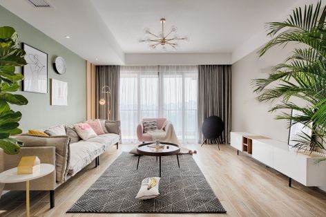 绿地汉口中心112平三居北欧风装修案例风效果图
