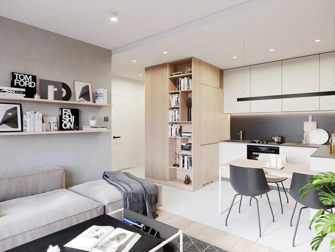 如果客厅的层高比较高,餐厅的层高却比较低矮,那么为了餐厅的布局显得不局促,可以在餐厅做成无主灯的设计,而客厅还是做成吊灯的模式,这样可以使客厅与餐厅的空间感更和谐。
