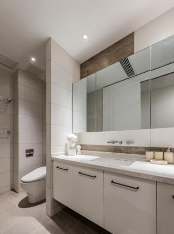 能够将卫生间的功能发挥到极 致的,还要属日本较为流行的四式分离,其主要特点就是将盥洗区、淋浴区、厕所和更衣室等进行分隔,每个区域都密切联系但又各成一体,即使两三个人同时使用都没有问题。