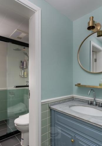 当然,如果卫生间的空间不够大,也可以将洗手台直接从浴室中搬出来,在门口的位置做一个盥洗池,这样早高峰一家人一起使用也不会尴尬!