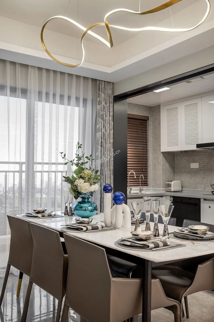 135平方三居现代轻奢餐厅装修效果图