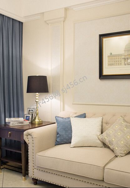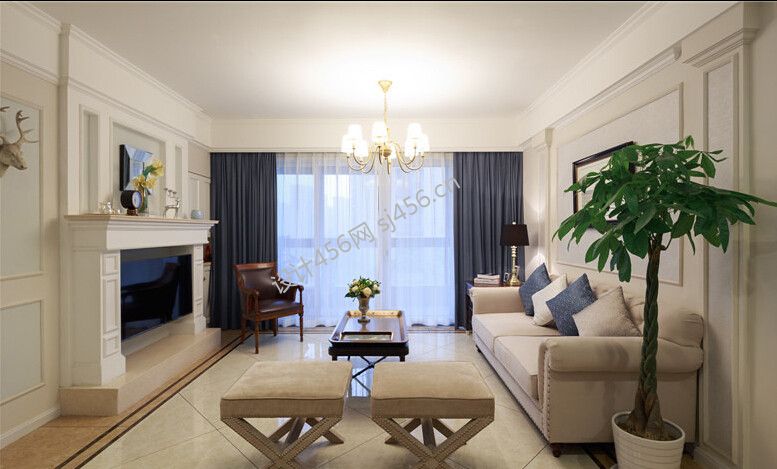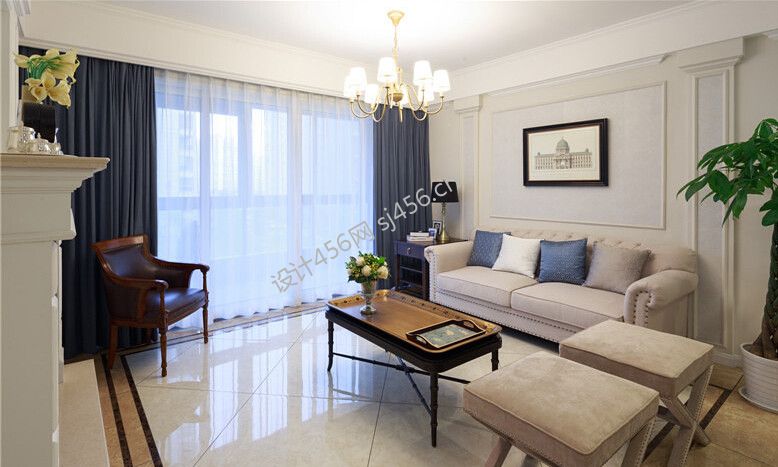 145平米现代美式风格三室客厅沙发墙装修实景图