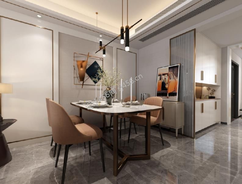 越秀星汇云锦106平米轻奢三居室装修案例风效果图