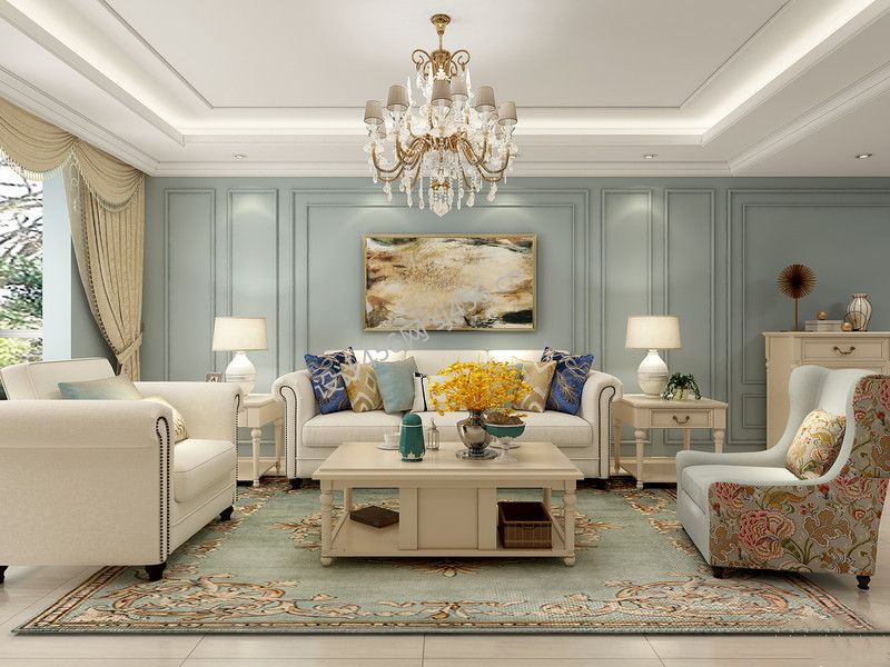 天纵半岛蓝湾美式风格三居室94平米装修案例风效果图