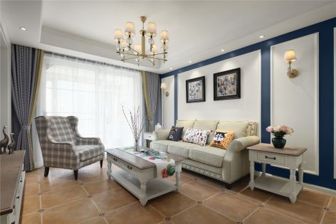 天纵半岛蓝湾美式风格三居室94平米装修案例风效果图