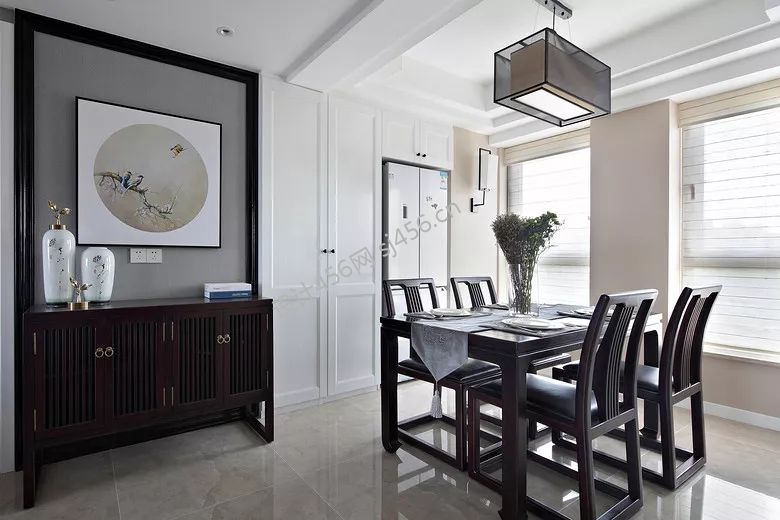 江南新天地新中式风格112平米三居室装修案例风效果图