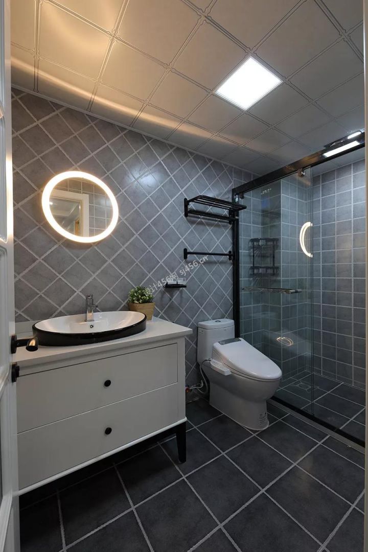 现代简约风格110平米三居室卫生间洗手台装修设计图