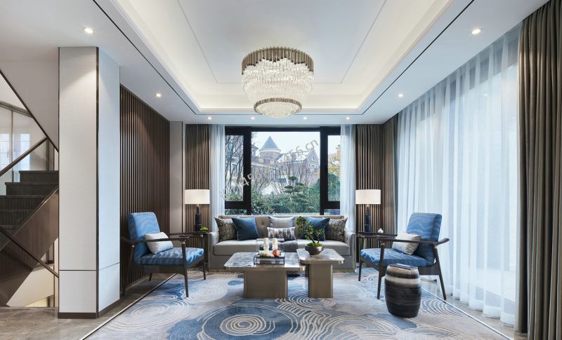 世茂龙湾新中式风格476平米三居室装修案例风效果图