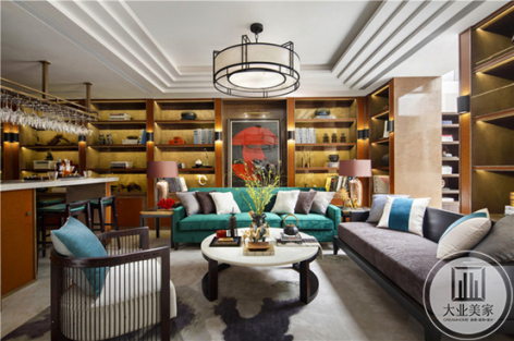 世茂龙湾新中式风格476平米三居室装修案例风效果图