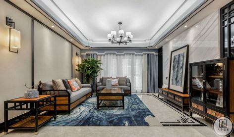 琨御府新中式风格133平米三居室装修案例风效果图