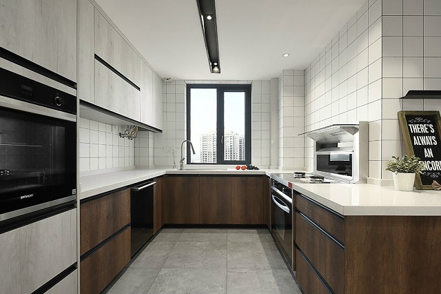3、如果你打算购买消毒柜、洗碗机之类的厨电,建议你在做橱柜时,可以预留一个适当的位置,将这些电器与橱柜融为一个整体。这样不仅可以让台面保持整洁干净,还可以节省厨房的空间位置。由于厨电种类较多、使用频繁,因此建议大家在做橱柜时多预留一下插座,这样可以方便后期使用。
