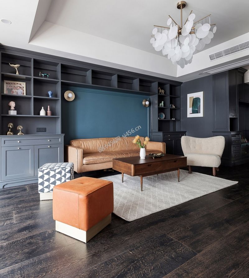 128㎡三居室美式风格客厅沙发背景墙装修效果图