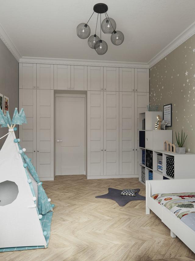 靠近的门口的地方定制了一个超大的柜子,可以用来收纳很多东西,等小孩长大了,这个大衣柜依然可以使用!
