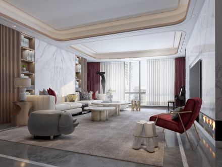 融创玉兰公馆110平三居室现代装修案例风效果图