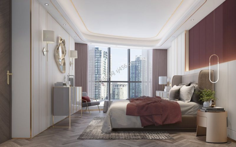 112平方三居室现代卧室床装修案例