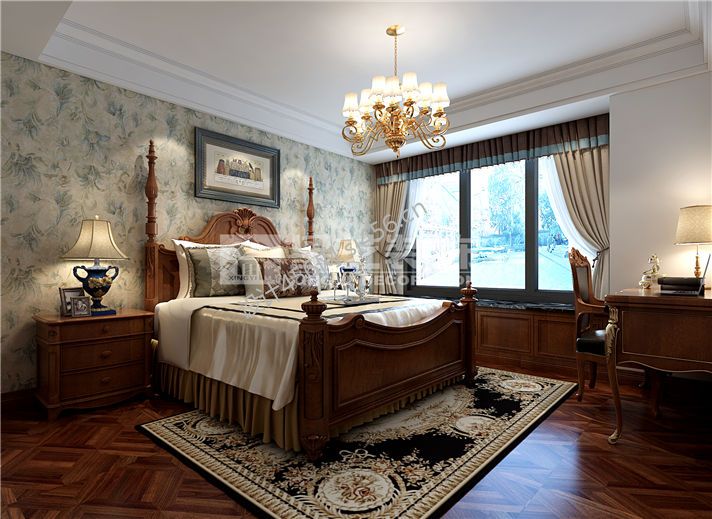信达蓝湖郡125平四居室美式风格装修案例风效果图