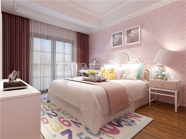 信达蓝湖郡125平四居室美式风格装修案例风效果图