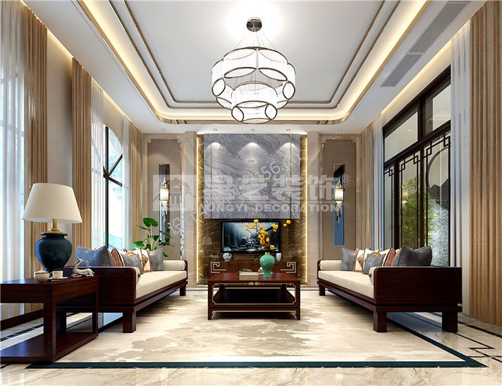 世贸滨江一期166平三居室新中式风格装修案例风效果图