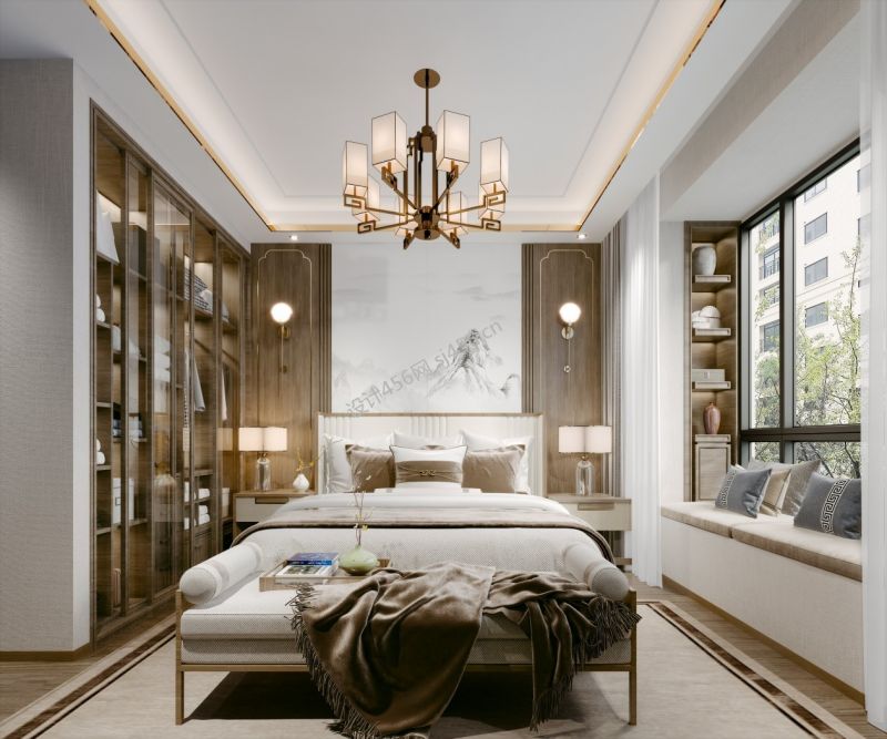 300㎡别墅新中式风格卧室装修效果图