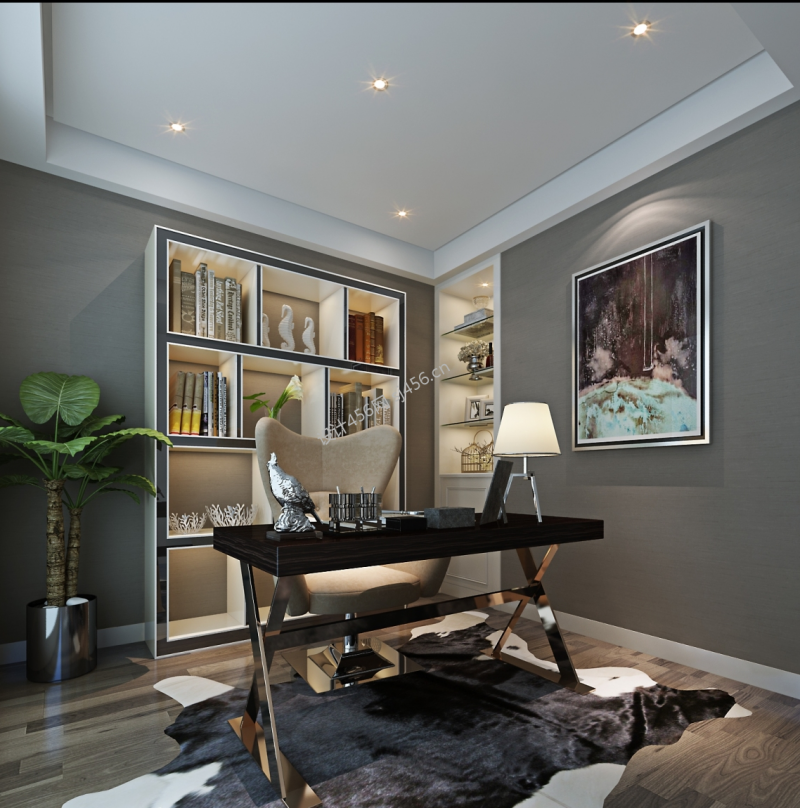 128平四居室现代风格书房装修效果图