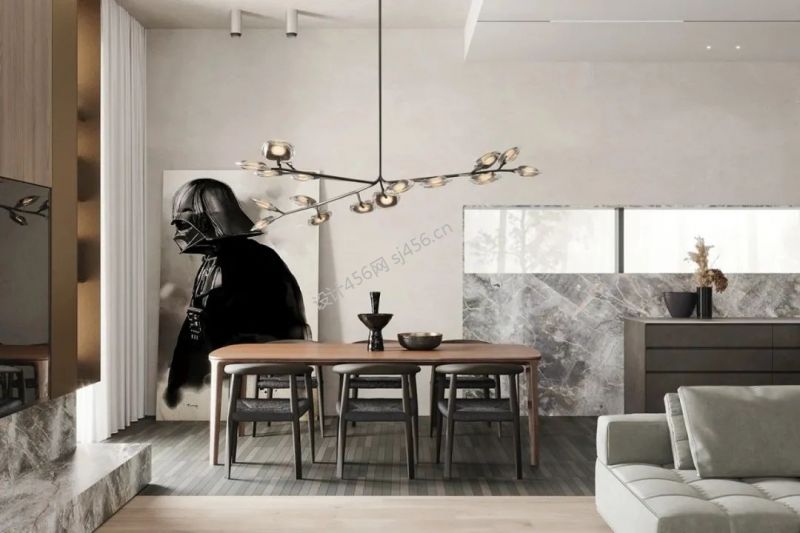 溪湾雅苑120平米现代轻奢风格三居室装修案例风效果图