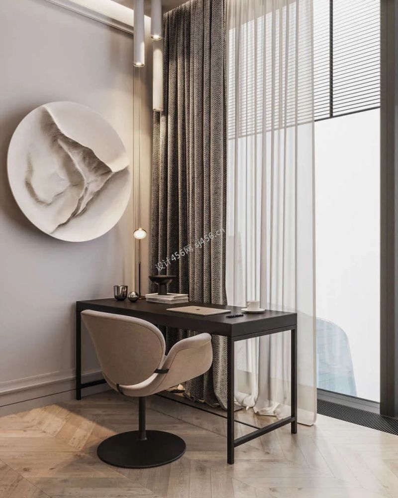 140平米三居室现代舒适风格书房窗帘案例图片