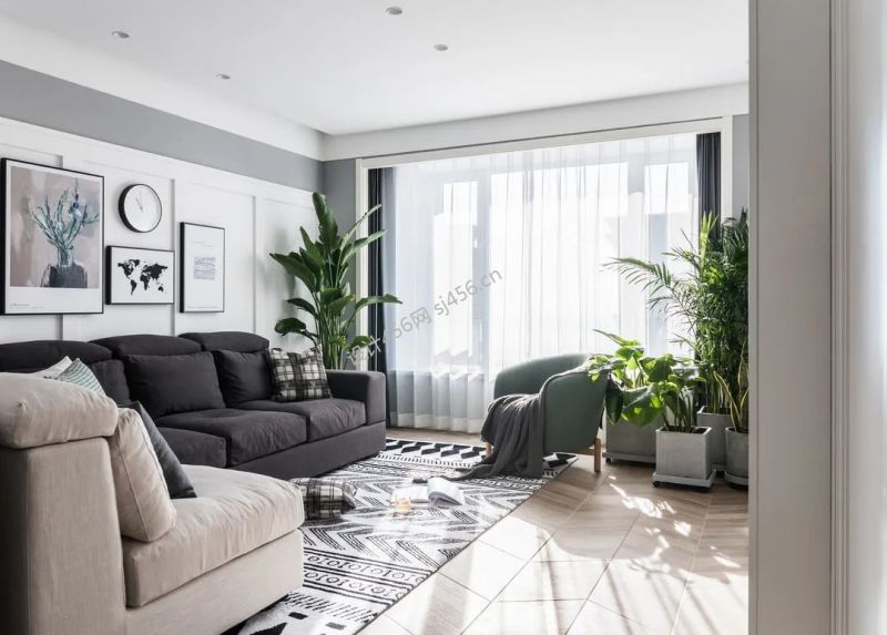 孔雀城北欧极简风格94平米二居室装修案例风效果图