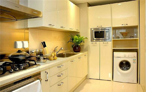 一般户型小的,为了充分利用空间,也有不少人把洗衣机摆放在厨房。当然,如果信风水的人则不愿意这么做,因为洗衣机与水相关,而厨房火相关,水火不相容。