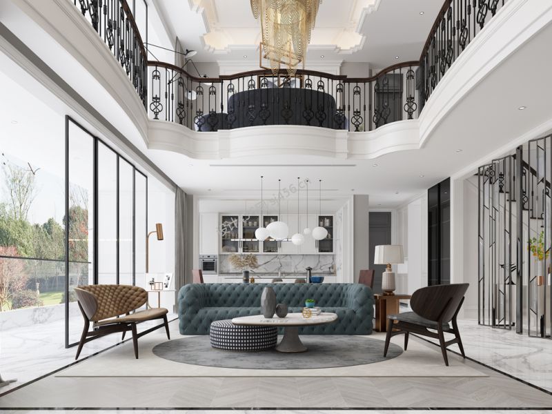 金科蠡湖900平米现代美式风格别墅装修案例风效果图