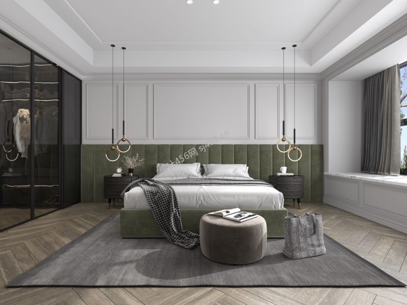 900平米现代美式风格别墅主卧室装饰装修案例