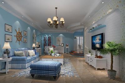 理想城市90平米两居室地中海风格装修案例风效果图