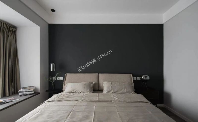 98平米极简风格三居室卧室背景墙装修设计图