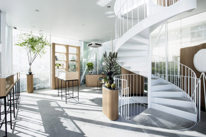 现代轻奢500平米珠宝店旋转楼梯装修效果图