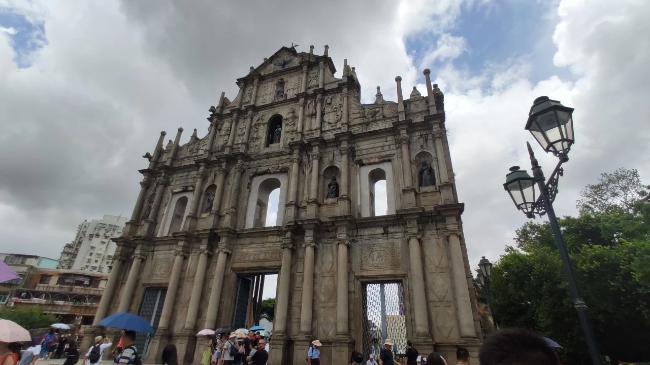 大三巴牌坊建筑糅合了欧洲文艺复兴时期与东方建筑的风格而成,体现出东西艺术的交融,雕刻精细,巍峨壮观。