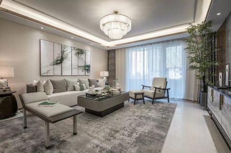 恒大绿洲新中式风格124平米三居室装修案例风效果图