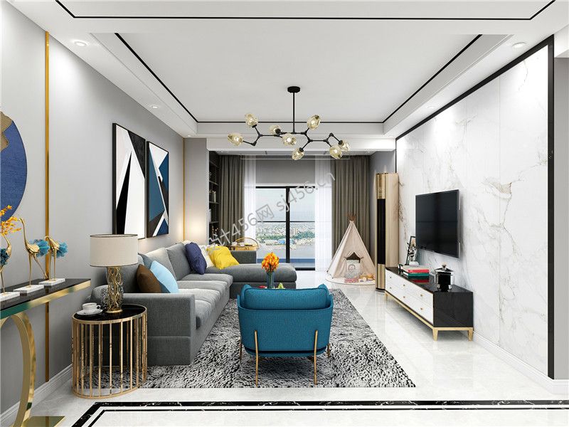 现代风格112平三居室客厅吊顶设计效果图