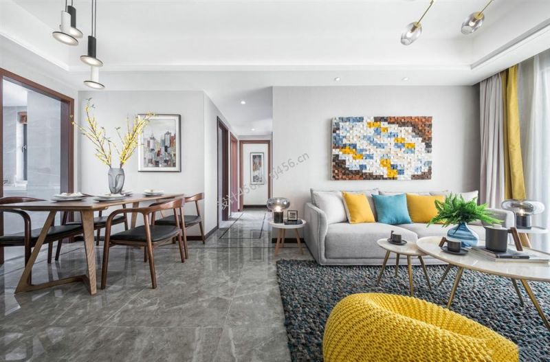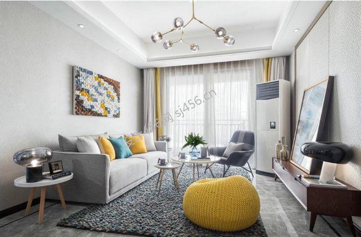 110㎡现代风格三室两厅客厅家居装饰装修案例